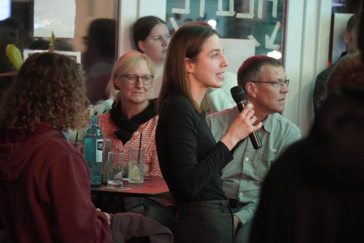 Steffi zeigte sich von der Resonanz sehr angetan: „Ich freue mich sehr, dass so viele gekommen sind. Und die Location ist cool, ich habe noch nie in einer Bar einen Vortrag gehalten.“
